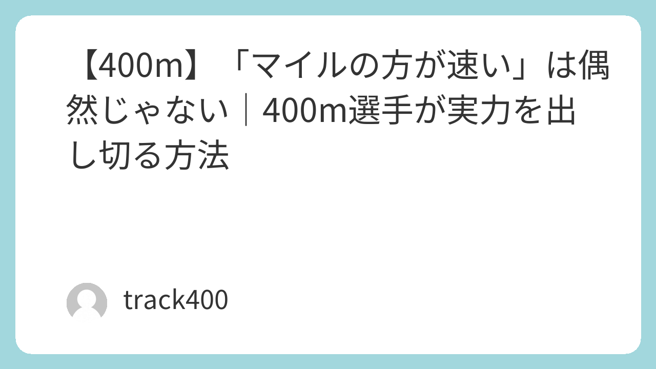 400mで100%の力を発揮するには、体力だけでなく「判断」や「レース中の感覚」も重要になります。